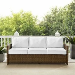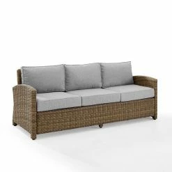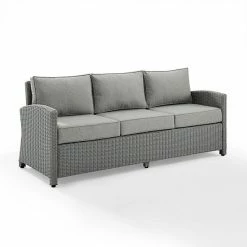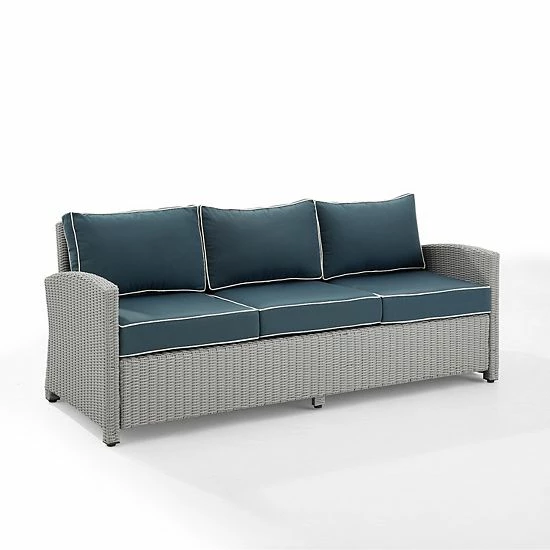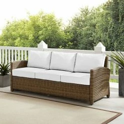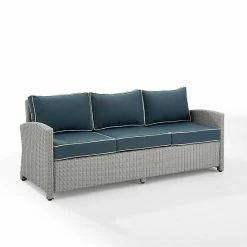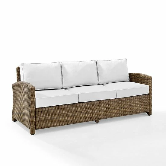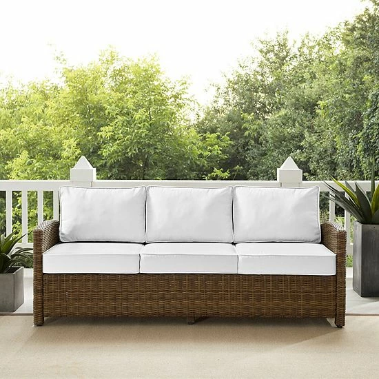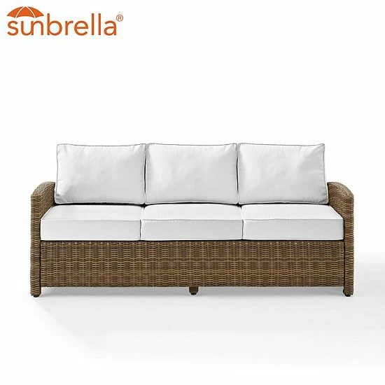 Entertain outdoors with the help of this Crosley Bradenton Sunbrella Wicker Couch.