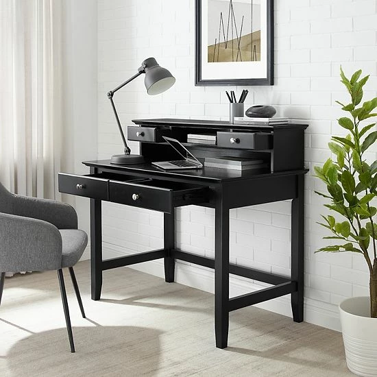 Traditional and sleek home design is easy with the addition of this Crosley Campbell desk and hutch set.