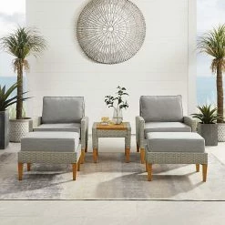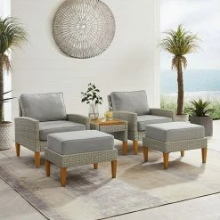 Entertain outdoors with the help of this Crosley Capella Wicker Patio Chair, Ottoman & End Table 5-piece Set.