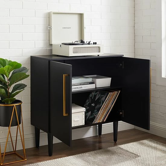 Accent your home with the sleek design of this Crosley Everett cabinet.