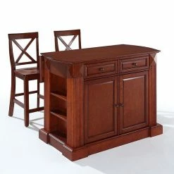 Add this Crosley Furniture island set to your kitchen for beautiful functionality.