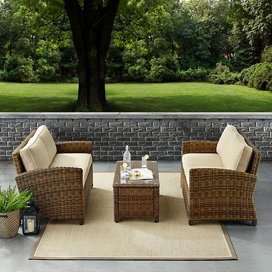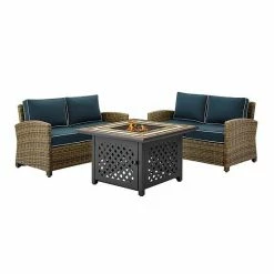 Add the final touches to your backyard experience with this Crosley Furniture Bradenton 3 piece outdoor loveseat wicker seating set with navy cushions.