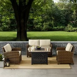 Instantly upgrade your outdoor seating with this Crosley Furniture Bradenton 4 piece outdoor wicker seating set with sand cushions.