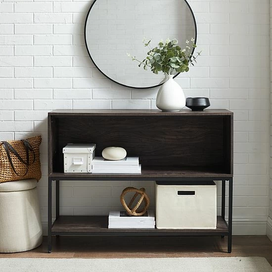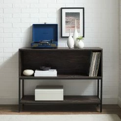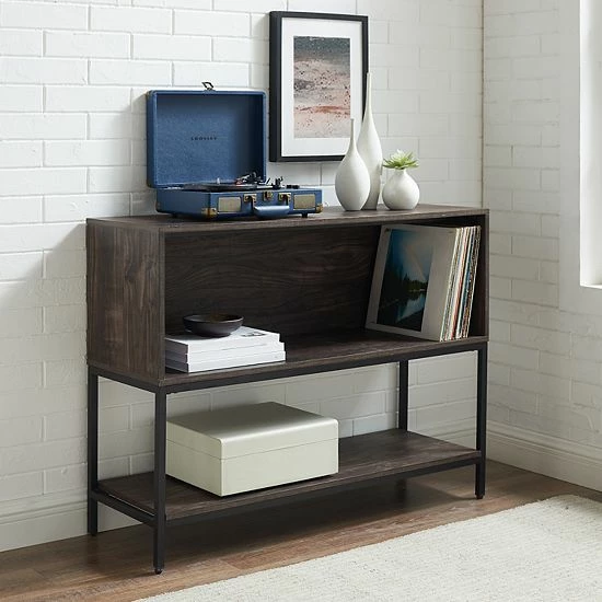Feature your favorite trinkets and records with this Crosley Jacobsen 3-tier storage console.