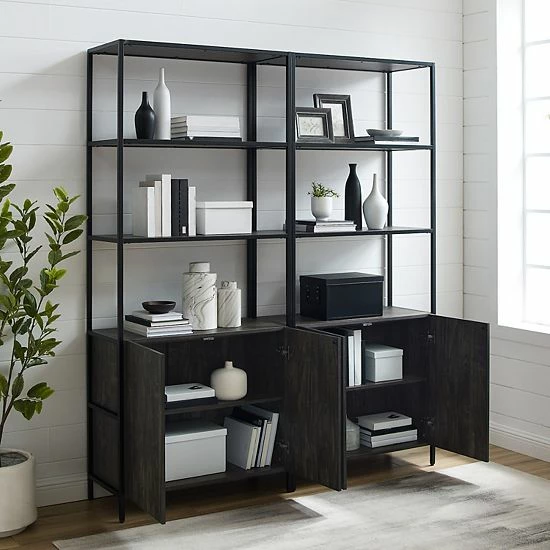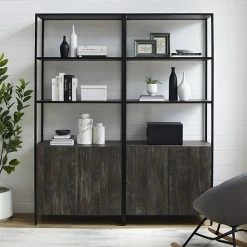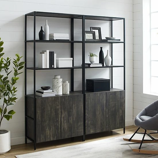 This Crosley Jacobsen etagere 2-piece set has plenty of space for storage and is the perfect statement piece for your living area.