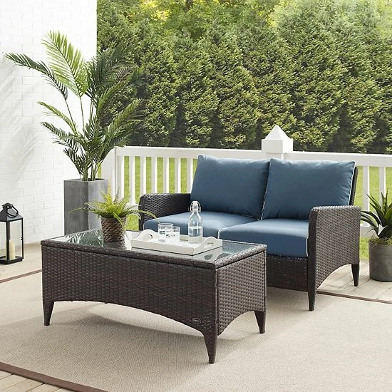 Turn your outdoor space into an oasis for relaxation or entertainment with this Crosley Kiawah 2-Piece Outdoor Wicker Conversation Set.