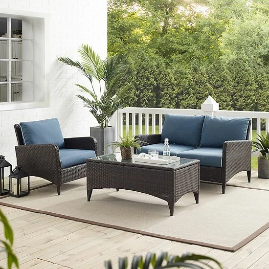 Turn your outdoor space into an oasis for relaxation or entertainment with this Crosley Kiawah 3-Piece Outdoor Wicker Conversation Set.