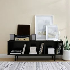 Refresh your living space with this Crosley Liam large console cabinet.