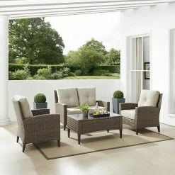 Turn your outdoor space into an inviting oasis with this Crosley Rockport wicker high-back conversation set.
