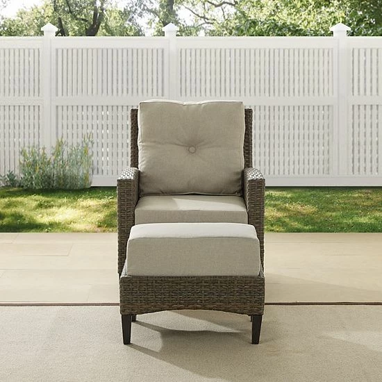 Keep your outdoor space looking stylish with this Crosley Rockport Patio Wicker High Back Arm Chair & Ottoman 2-piece Set.